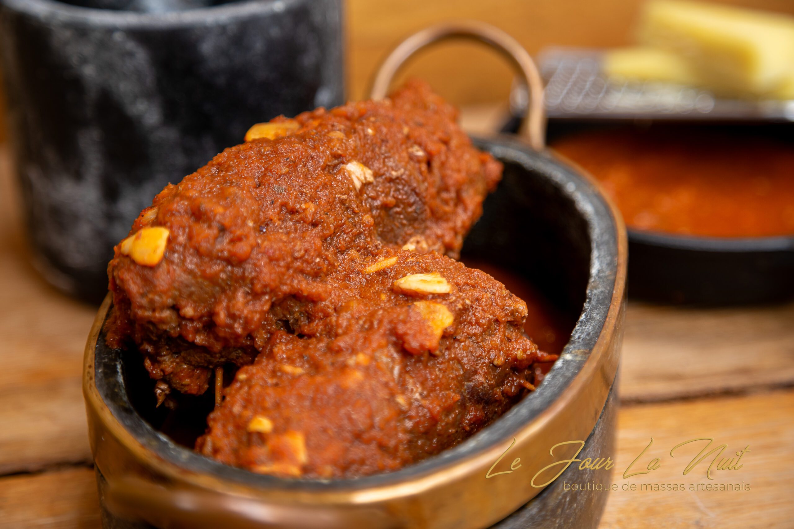 Bracciola é carne recheada com temperos, ervas e queijo, enrolada e cozida em molho de tomate, oferecendo um prato suculento e cheio de sabor.