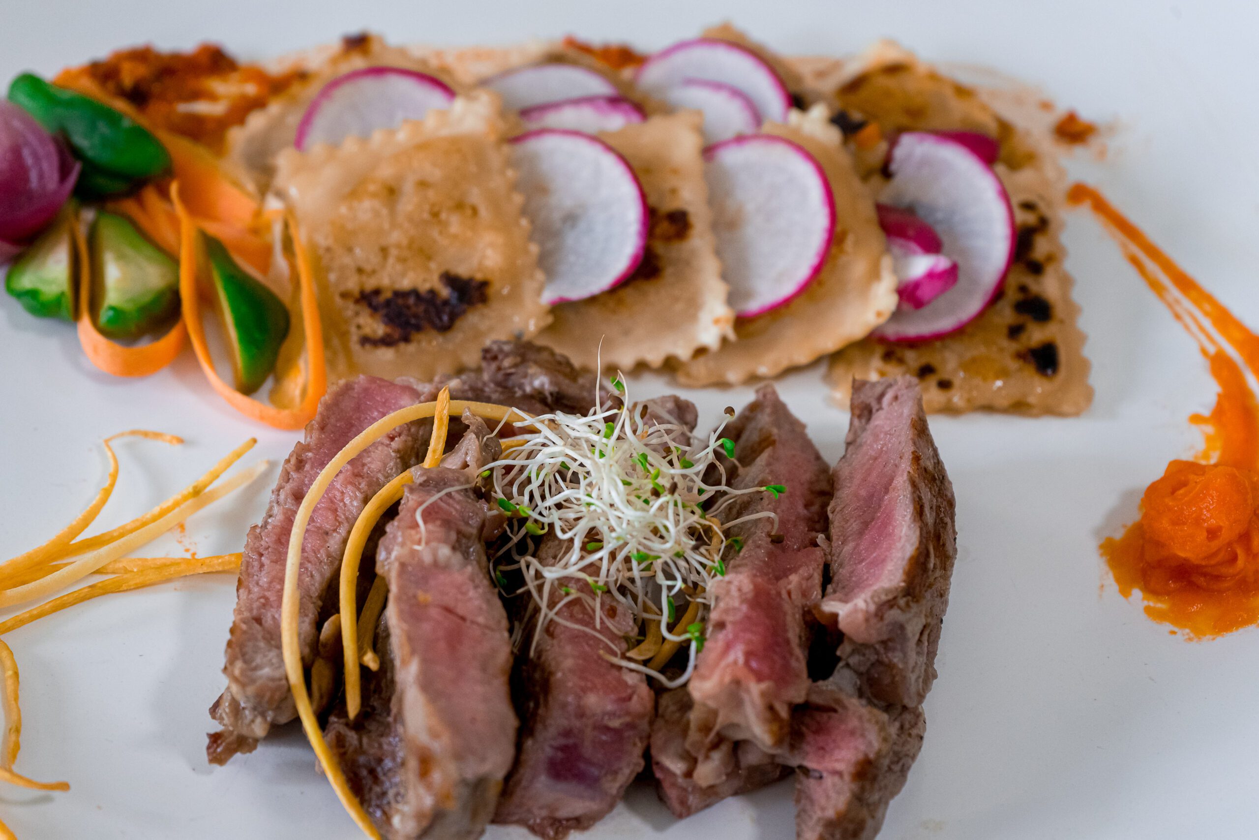 Entrecôte Grelhado e Pansotti Ricota de Búfala e Castanhas