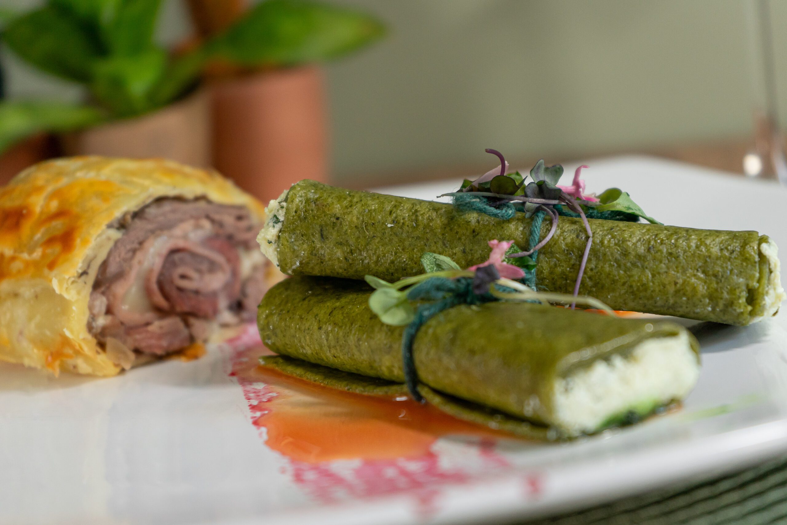 Filet a Cordon Bleu com Canelone Verde Meia Cura e Castanhas