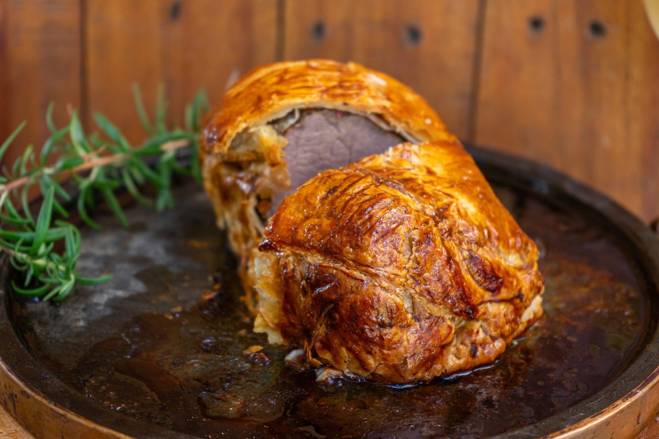 Carne de Angus com Presunto Parma envolto em massa folhada.