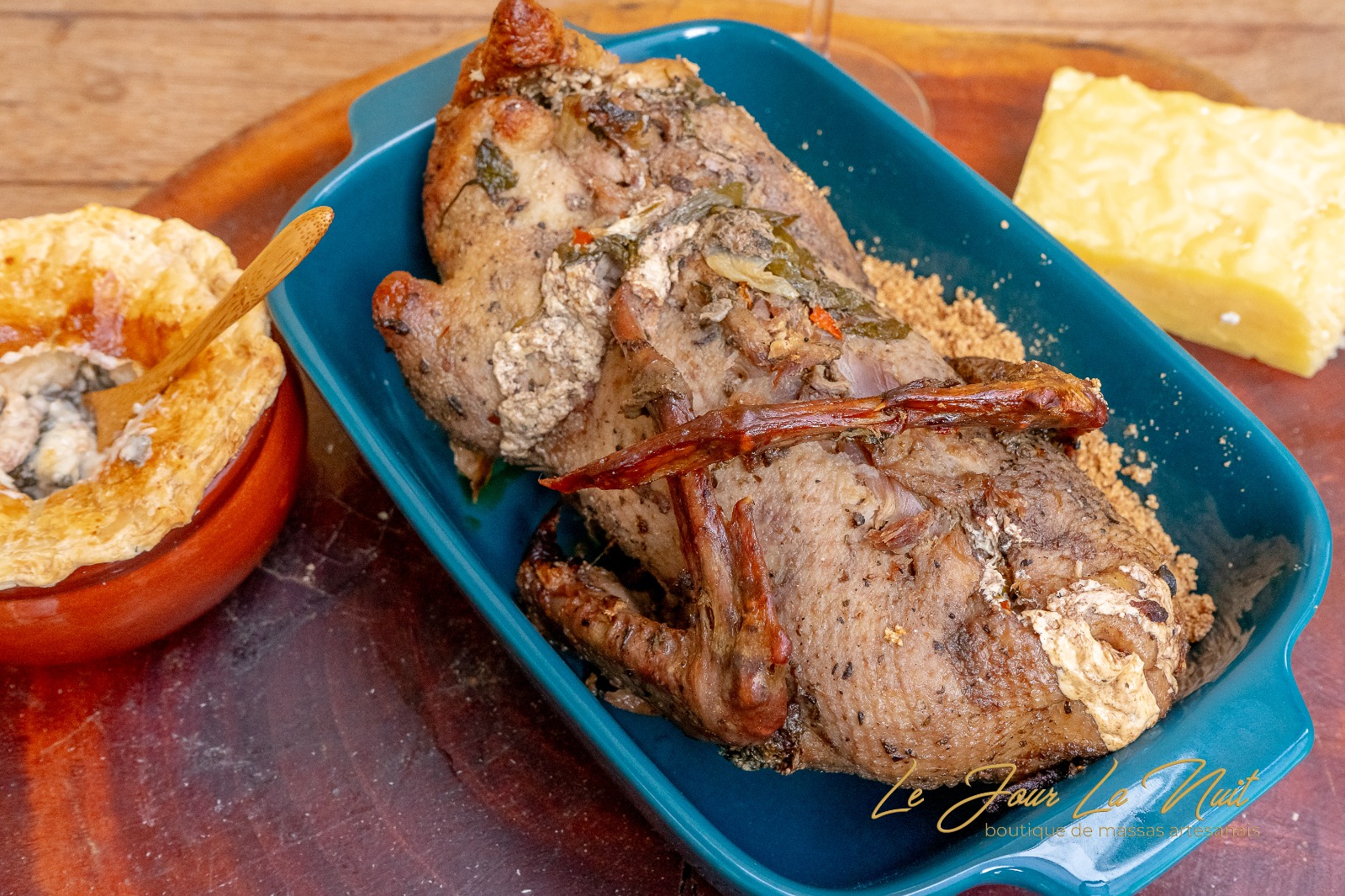 Descubra o sabor único do nosso pato desossado e recheado, preparado com perfeição. O recheio pode ser uma combinação de espinafre e queijo feta, proporcionando uma mistura delicada e cremosa, ou, para uma experiência mais intensa, espinafre, queijo de cabra e amêndoas, que oferece um toque sofisticado e crocante.